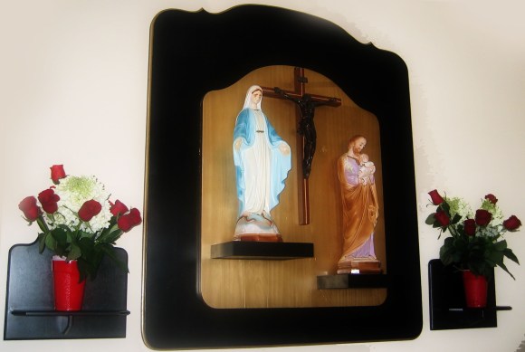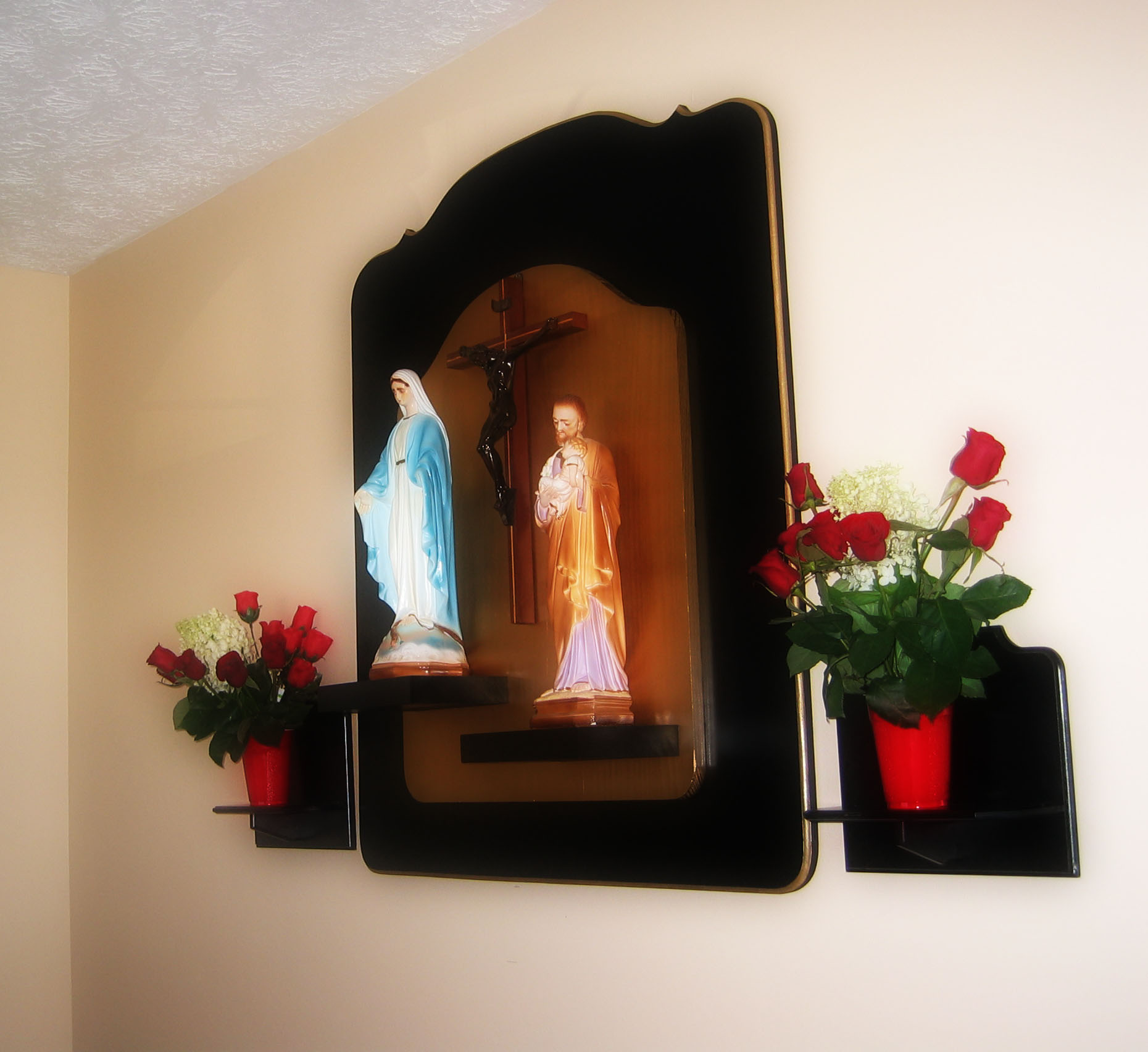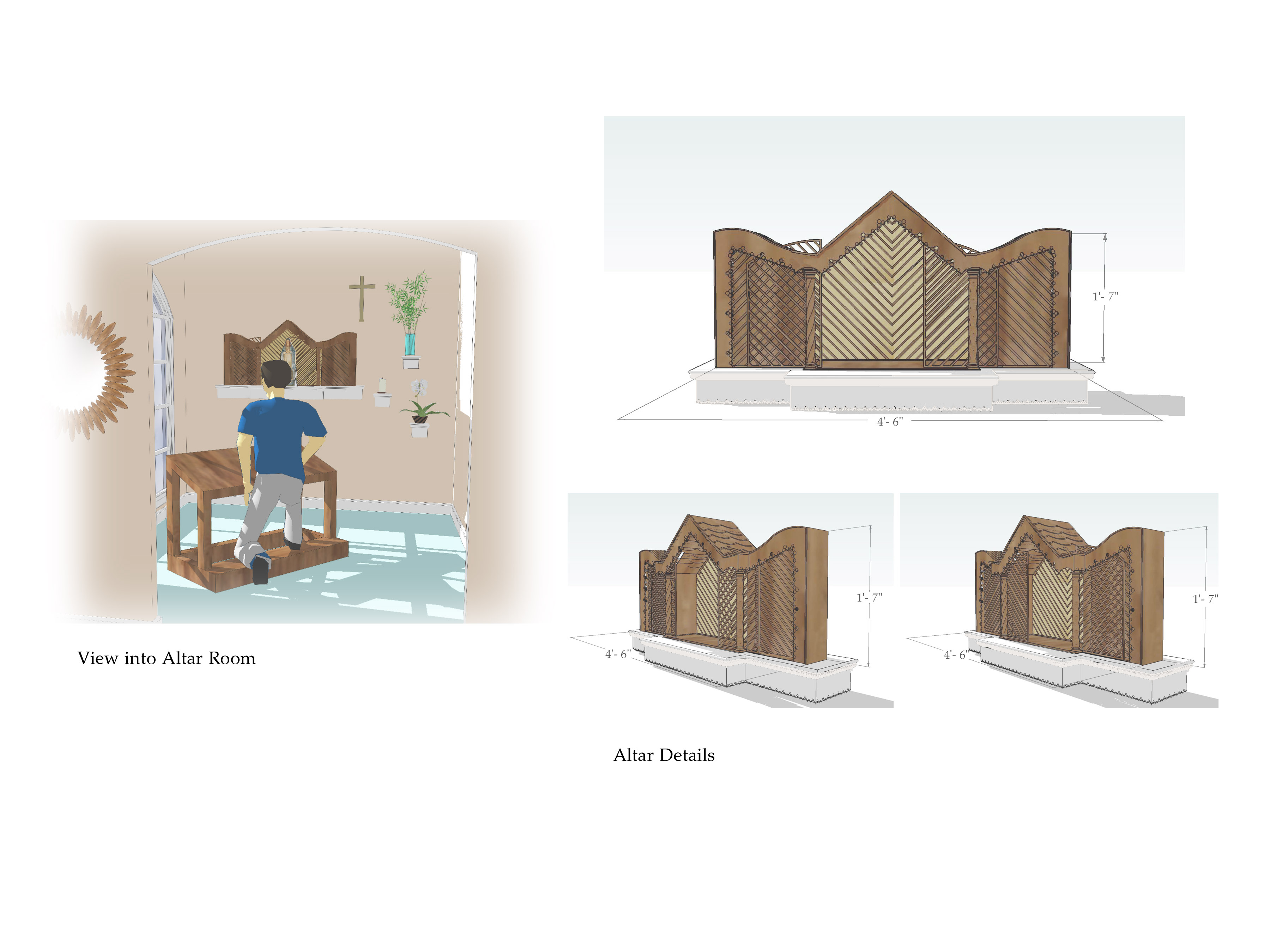 Then, voila! Paired with local carpenter Jeff who completed the second design then hung the altar in the home, we left a happy home owner to pray.