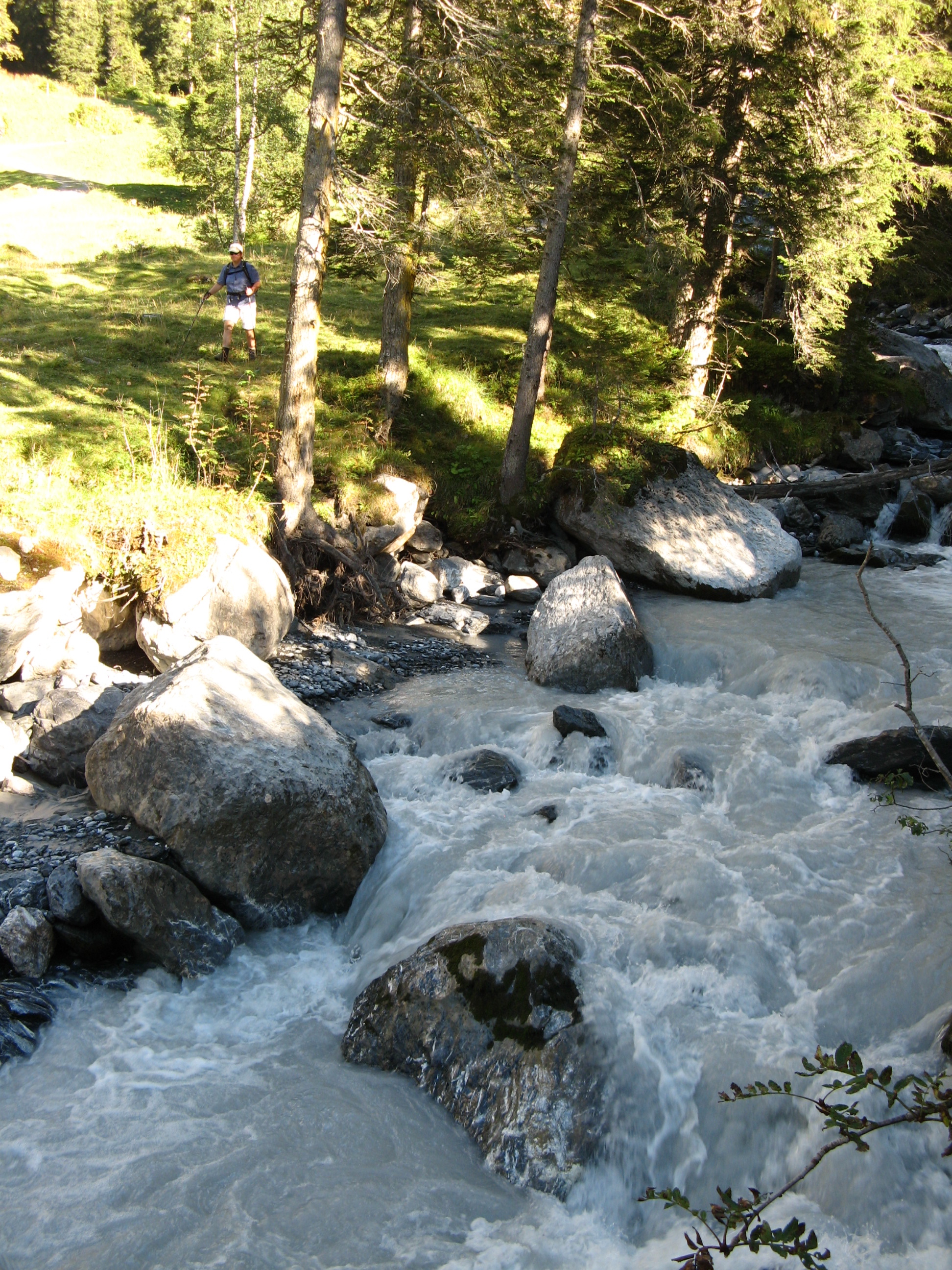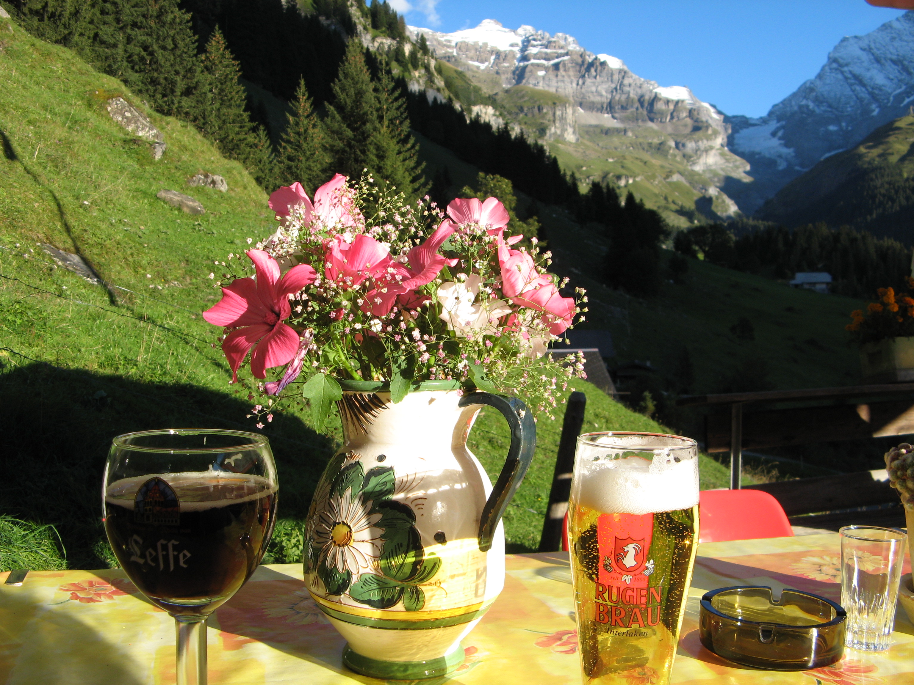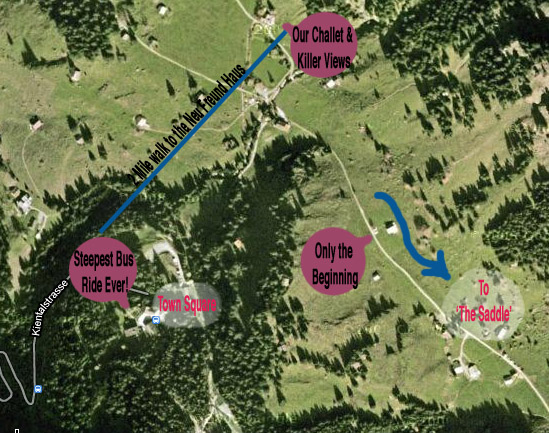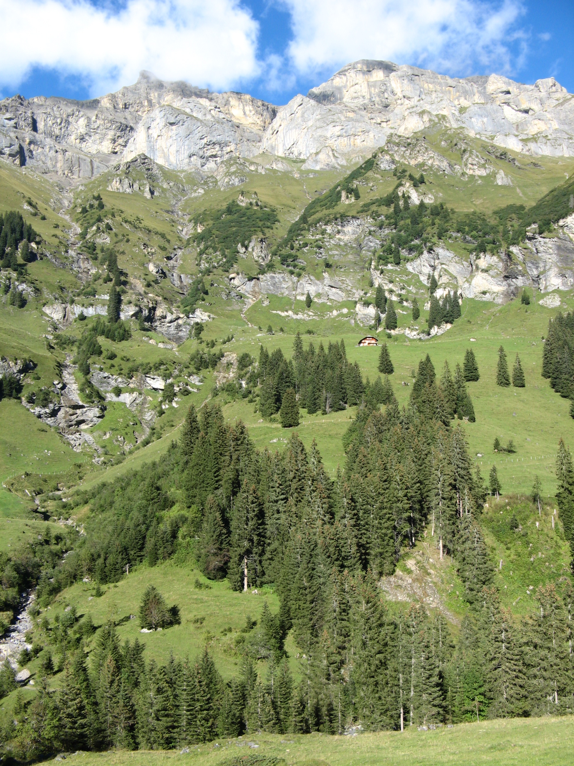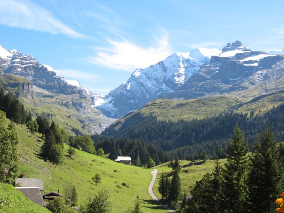 At our chalet we sit as high as West Virginia’s High point -Spruce Knob. The children yell in high-pitched German. There is a vertical forest of Spruce. Steep fields with one road pass and many more hotels and chalets in Griesalp than expected. Ours, over the bridge, next to the house under the road, turns from where our bus left off. Much quieter.