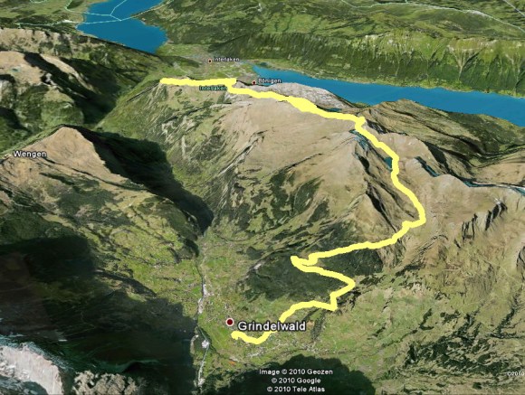 Phil was able to track our hike with Google Earth and what we’d end up doing tomorrow would be to date our most difficult hiking challenge – 14 miles and a vertical climb of 4922 feet from Grindelwald to Schynige Platte.