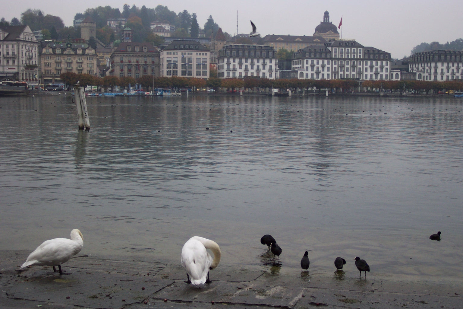 We left Balmers after our meal ticket breakfast and jumped on a bus to get to the train station in the rain. We ran into a grocery store nearby to get pig rolls, (?) nuts, dried blueberries and snacks for our trip into Italy. We boarded into our comfortable seats. I read and wrote. Phil made a video that included music from his ipod buds. We had a train exchange in Luscerne which left us about an hour layover to explore the town. Just like eight years before, it was cloudy and the picturesque mountains were out of sight. We walked the crowded 14th century Chapel Bridge and grabbed a cup of coffee at Starbucks where we nearly didn’t escape the excited tourists gals wanting their photos taken, then another one with the barista, then another one… just because they were in a Starbucks. Fortunately we didn’t run into them near the Chapel Bridge.