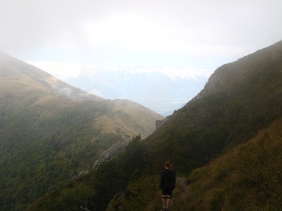 We began our ascent. It was a day to be spent in the clouds. You could not see 20 minutes ahead, or 20 minutes behind. Time was only for now, the turning edge of a mountain, the purple fluted flower and bumble bee sucking as I pass. The fist-sized rock that most of Monte Grona consisted of was difficult to climb.