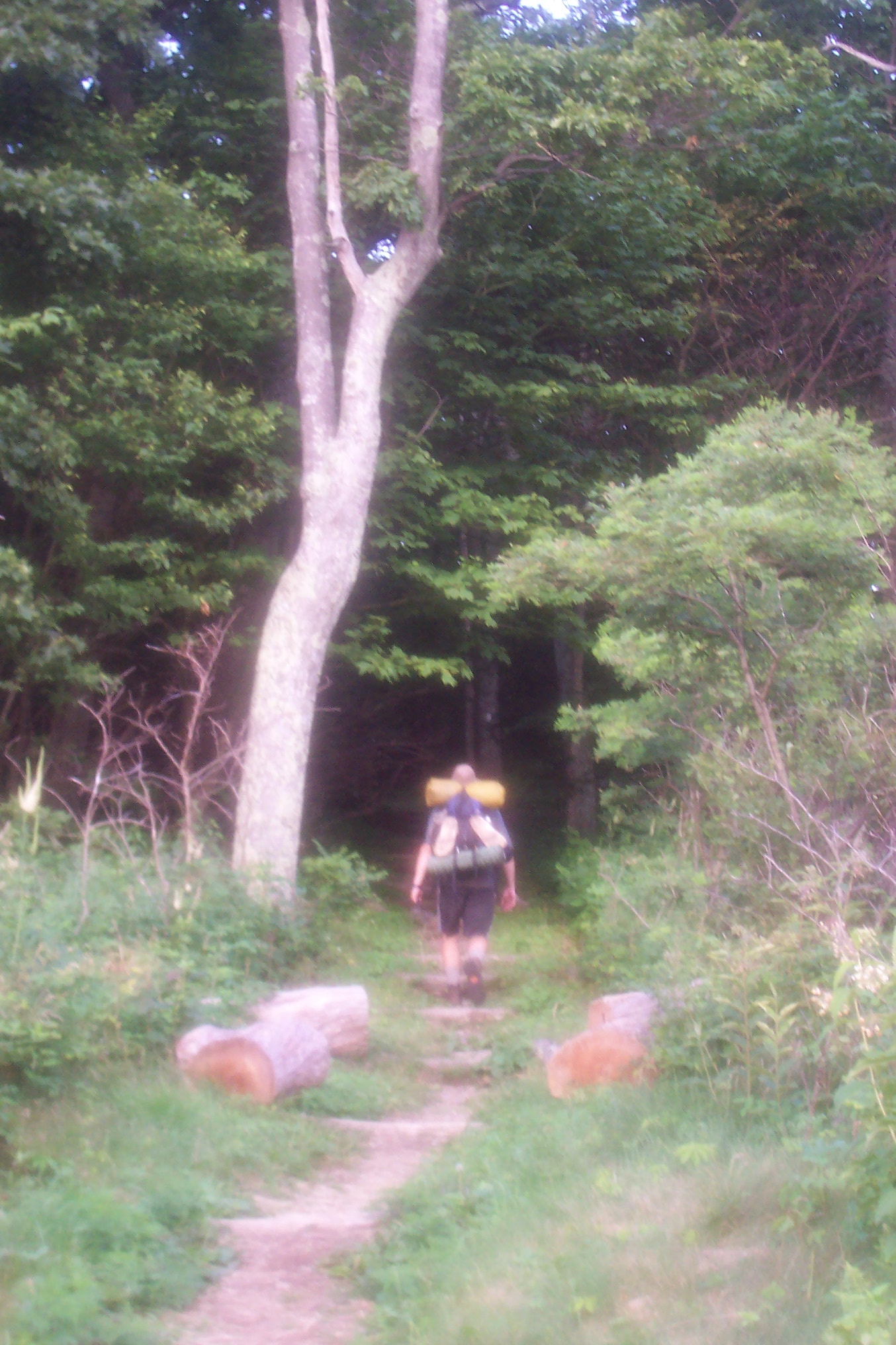 From there we had set a destination for the Tom Floyd Wayside, to restock, grab a “trail crave” item like a Coke or a donut. And that’s the thing; I normally don’t drink soft drinks or eat donuts but after a couple 15+ mile days, they all sound fantastic. Someone my size hiking 20 miles can burn in excess of 4500 calories a day, so the body is looking to recharge itself with all sorts of fuel. We exited the park and descended to the area we thought was the wayside, however we were a little perplexed at the sight of a lonely shelter and privy. “What the hell is this?” I exclaimed. Apparently this is someone’s version of a wayside, not like the others, with their cold drinks, hot eats and grandparents and grandkids outside licking ice cream and laughing, which is what I had fantasized for miles. No coke, no donut. And its not like we were going to die of starvation or dehydration but it was a stop we had looked forward to on a hot muggy day. I was running low on water and noticed a sign that pointed toward a spring. As Penguin took a seat in the shelter I continued walking down a path to the water source. The path switched backed several times as I descended further into the valley. About half way down the hillside I heard a rustling in the adjacent brush and to my surprise saw a small black bear cub. I was somewhat desensitized of the initial shock of the sight after seeing nearly a half a dozen bears over the last two days. Then I thought to myself “Cub…….momma” And it was at that moment that I heard an even more intense rustling beyond the young bear. “okie dokie, screw the water.” and I slowly back stepped, turned around and quietly returned up to the shelter, waterless. It was 10:30 and we had already hiked 8 miles with another 9 to go to the next Shelter.