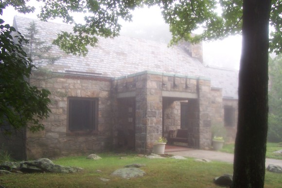 Not two miles after leaving Derrick, it started to rain. And hard. Light clamps of thunder soon followed in the distance, as we scoured up a relentless hillside. The trail quickly became a perennial stream. Our strides grew longer and swifter as the claps of thunder became louder. We both knew about the Bears Den Shelter that sat halfway between the shelter we had just left and Blackburn Hostel. We were going to pass up the Bears Den, but agreed to stop there until the storm passed. I came to the sign that pointed us off the trail and onto a gravel service road. We then came across an unexpected sight; two large stone columns that presented itself as an impressive gateway. Beyond the columns, we saw the Bears Den Hostel; a beautiful split level stone building. In an adjacent gazebo we saw other hikers huddled together, most familiar to me from the previous night. I noticed a sign the said, ” Hikers entrance in back”. We passed through the rear entry into a small foyer filled with muddy boots and mountains of wet gear. Sopping wet, we peeled off our top layers and boots and continued into the building, where we found a group of hikers sitting in lounge chairs drinking Cokes and watching Space Balls. The room was filled with bunk beds, like one would find at summer camp. Kellyn and I joined in on the refreshments and made wet butt-prints in the low woven carpet. “Grasshopper” emerged from another room. He was a quiet yet distinguished older man from South Carolina who’s words poured out slowly in a Jimmy Stewart/ Sean Connery like fashion. “What is this vile motion picture?” he asked. “Space Balls.” someone replied. “Space Balls??…” he muttered and shook his head in disbelief. But Grasshopper sat and watch the remaining hour with the rest of us like it was his brotherly duty. I did, however, catch him fighting back a laugh or two.