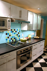 Different hues can be picked up with the texture of materials, color, and type of furniture. You must know what the room is used for before beginning to arrange the color interaction. You can use color to focus on certain things, or use it as a background that fades away. Look at the photo above. Do you really see the white cabinetry?