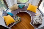 I think color blocking is best used in small spaces, where pattern and movement of too many textures and colors can become overwhelming. The dark color is restful.