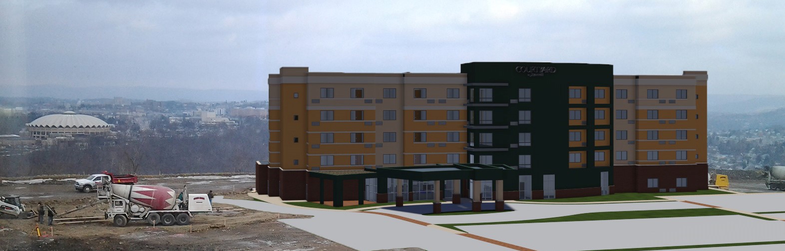 A brand new five-story hotel is planned to rise across the street from the Morgantown Black Bears baseball stadium in Granville, WV. This Courtyard by Marriott has been a collaboration of a full design-build team. Along with the owners, West Place, LLC and general contractor, Waller Corporation, Mills Group is leading the effort.