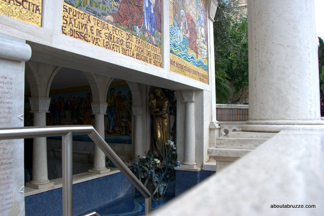 Gabrielle’s family was opening up secrets to the city. Behind and beneath Madonna Del Splendore was a baptismal pool, and a small tiled room for people to gather fresh water. We tasted it as did Gabrielle. We looked downward again over the landscape as it was close to sunset. Our little group was trying to communicate about what we should do tomorrow. We understood that they would take us to the mountains near San Grasso, to the famous church of San Gabrielle. I feared it was too much and finally figured out how to say ‘we do not want to disturb you’ in Italian. But they said no, no, we’ll pick you up at 9 and we will go there. I worried about it later that night, but really for no good reason. I had to trust my mother’s instincts that told me it would be fine. They bid farewell and we walked the ancient streets of Giulianova trying to bring together where our day had begun and ended.