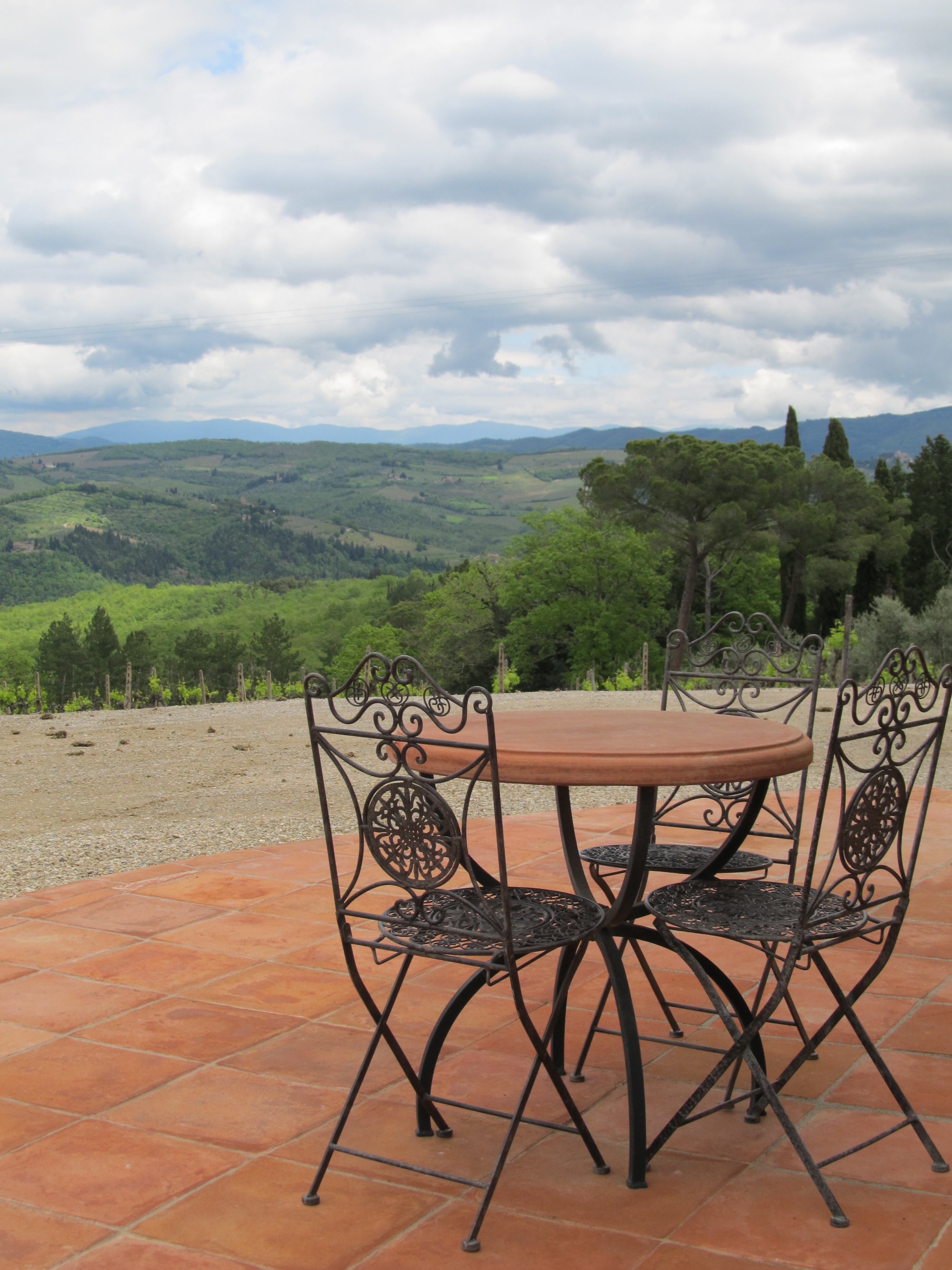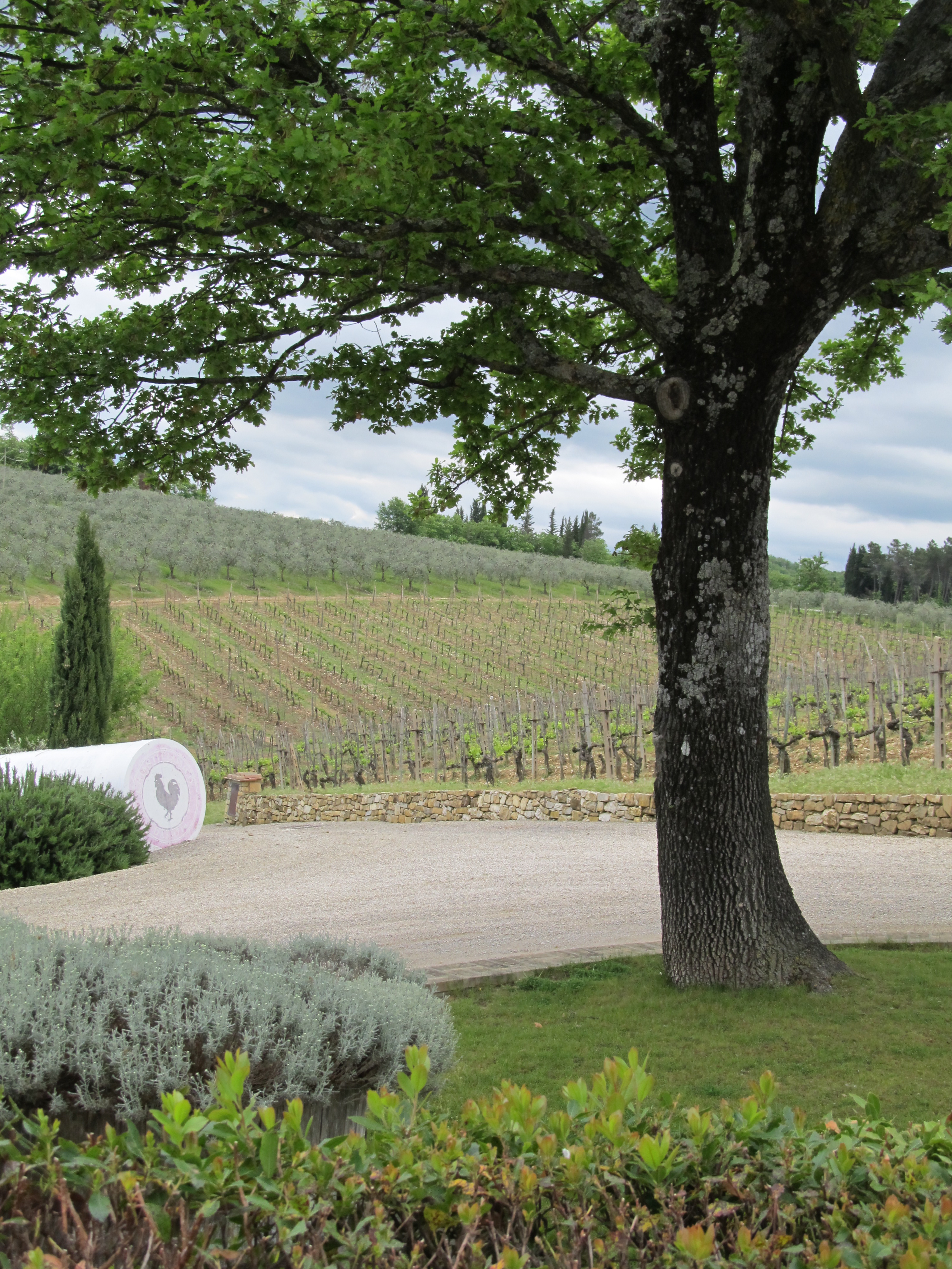 After class we were driven out into the countryside. We pulled up to a breathtaking place in Tuscany, the courtyard at Fattoria Montecchio, the first winery of our two-winery tour. The winery had been purchased a hobby and was maybe 400 years old!