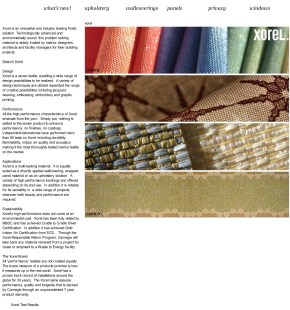 There are companies such as Design Tex and Len-Tex who have achieved Cradle to Cradle certification, and others such as: Maharam MDC Wall coverings Milliken Mod Green Pod Pallas Dialtones (made of discarded Japanese telephone books) Sinan Natural Wallpaper Adhesive